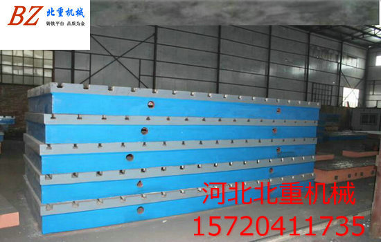 T型槽平臺設(shè)置的加強(qiáng)筋,能夠提高鑄鐵模的結(jié)構(gòu)強(qiáng)度,利于防止平板因內(nèi)應(yīng)力太大而開裂,由于T型槽平臺采用了鑄鋼材料,增強(qiáng)了鑄鐵??篃崦浝淇s的強(qiáng)度,并且即使發(fā)生開裂,也易對其裂縫進(jìn)行焊接修補(bǔ),從而能夠重復(fù)使用,大大延伸了T型槽平臺使用壽命。