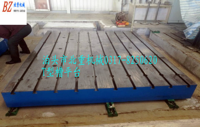 2、異形規(guī)格:通常T型槽平臺以長方形為主,如需要正方形如5000*5000mm,可以考慮拼接成2塊長方形,如2500*5000mm。這樣的好處是單塊鑄鐵T型槽平臺精度好控制。