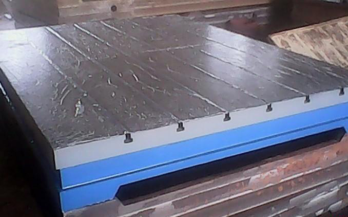 我公司生產(chǎn)的鑄鐵T型槽平臺工作面采用的是刮研工藝,用涂色的方法進行檢驗,保證了平面的精度。工作面一般有T型槽,也可以根據(jù)要求加工長孔和圓孔,這種T型槽平臺采用的是優(yōu)質(zhì)純鐵鑄造而成的。我公司生產(chǎn)T型槽平臺廣泛應用在動力機械設備的裝配、調(diào)試、焊接、鉚焊,這種產(chǎn)品表面帶有T形槽,可以固定機械設備。另外需要提醒的是,我公司可以根據(jù)用戶的要求,定制各種規(guī)格的T型槽平臺。我公司為黑龍江康潔機電設備公司生產(chǎn)的1500×3000T型槽平臺14塊下面是生產(chǎn)現(xiàn)場中圖片場景:
