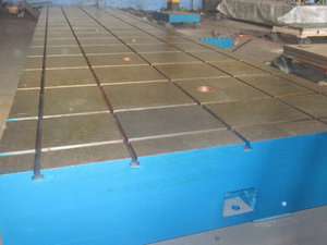 重型鑄鐵平臺按GB/4986-85的標(biāo)準(zhǔn)制造,產(chǎn)品制成筋板式和箱體式,工作有長方形,材料HT200,工作面采用刮研工藝,工作面上可加V型、T型、U型槽和圓孔、長孔等。平板是用于工件檢測或劃線的平面基準(zhǔn)器具。平板安裝應(yīng)調(diào)至水平、負荷均分布于各支點上,環(huán)境溫度(20±5℃)使用時應(yīng)避免振動。
