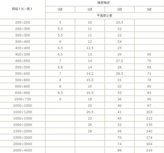 T型槽焊接工作臺規(guī)格尺寸及精度表